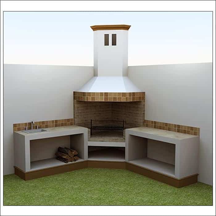A veces por el espacio reducido que tenemos en casa, no es posible construir un asador de concreto como los diseños anteriores y tenemos que recurrir en aprovechar las esquinas de los muros, y es ahí donde podemos construir nuestro asador de concreto en la esquina del patio o donde se unen los muros de una barda o de algún cuarto que tenemos disponible para nuestro asador.