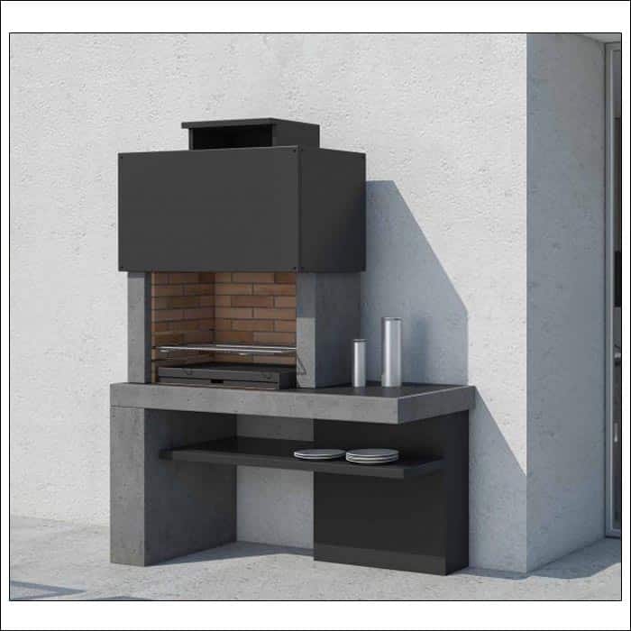- Asador con campana: Estos canalizan mejor el aire, lo que ayuda a crear mejor combustión y la conducción del humo. Además, se pueden controlar mejor las chispas que puedan generarse. Resultan ser bastante prácticos, pues el humo no va directo a la cara. Por otro lado, estos suelen ser más bonitos estéticamente y con acabados más definidos.