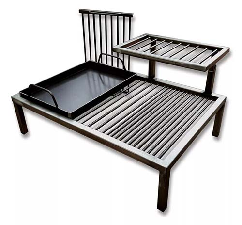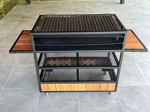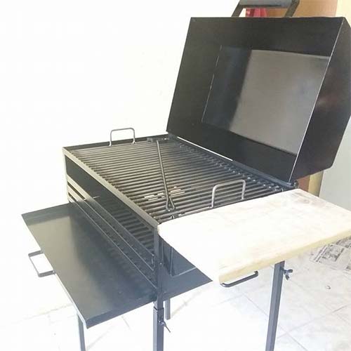 - Sin tapa: Son los modelos más económicos del mercado. Un asador de herreria que está compuesto por una o dos parrillas, una zona de trabajo y un par de baldas para guardar los utensilios de cocina. Generalmente, tienen forma rectangular.